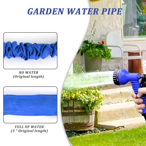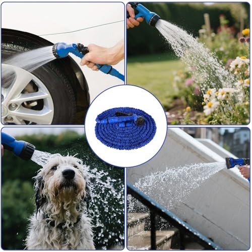 hjwanyin - خرطوم حديقة قابل للتوسيع - تركيبات مانعة للتسرب مقاس 1.27 سم، خرطوم سحري مرن قابل للسحب مع وصلات مقاس 1.9 سم، خرطوم حديقة قابل للتوسيع مع مسدس بخاخ بـ 7 وظائف (مقاس 30.48 م)