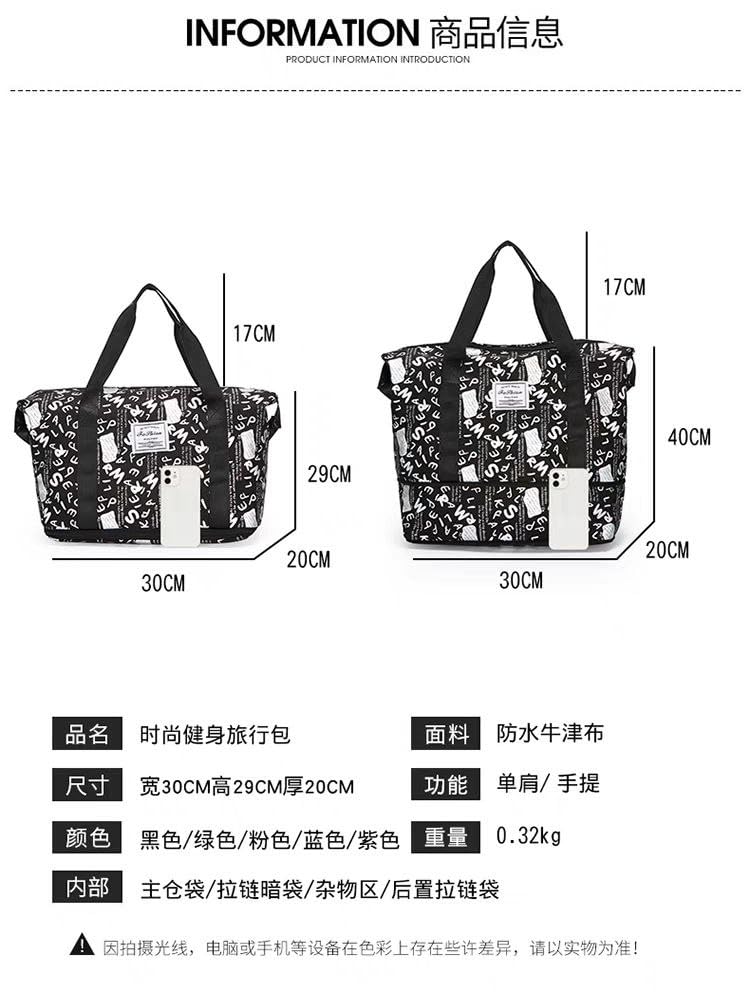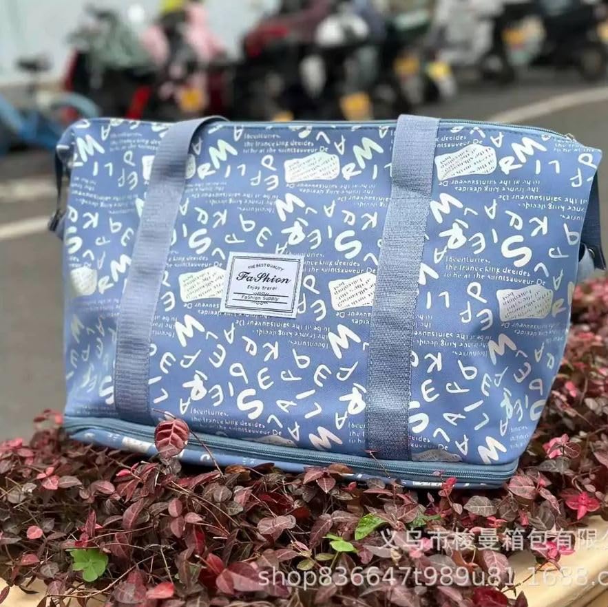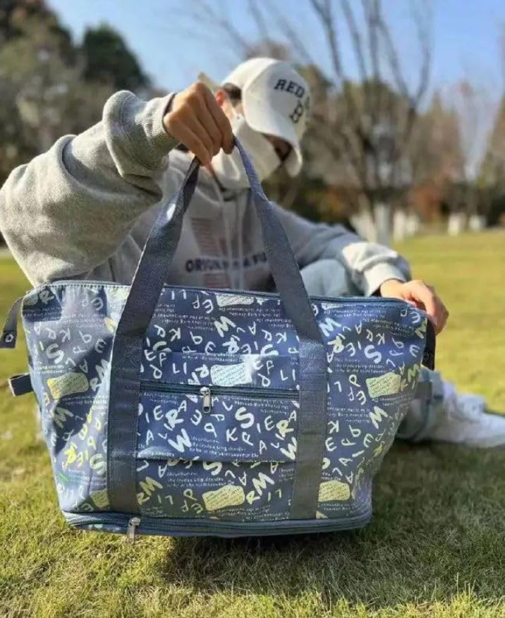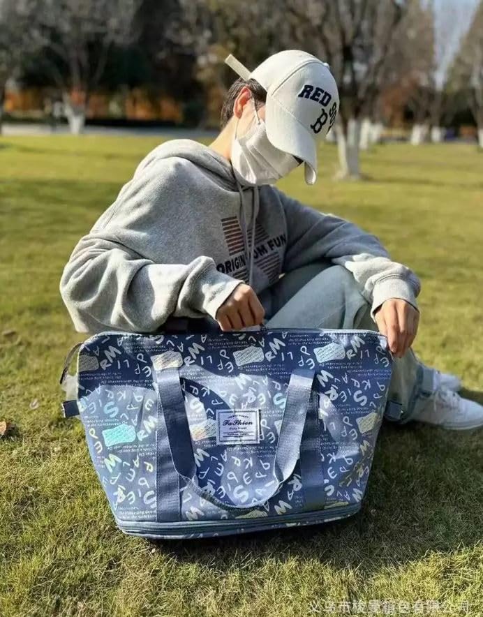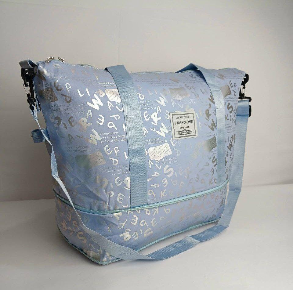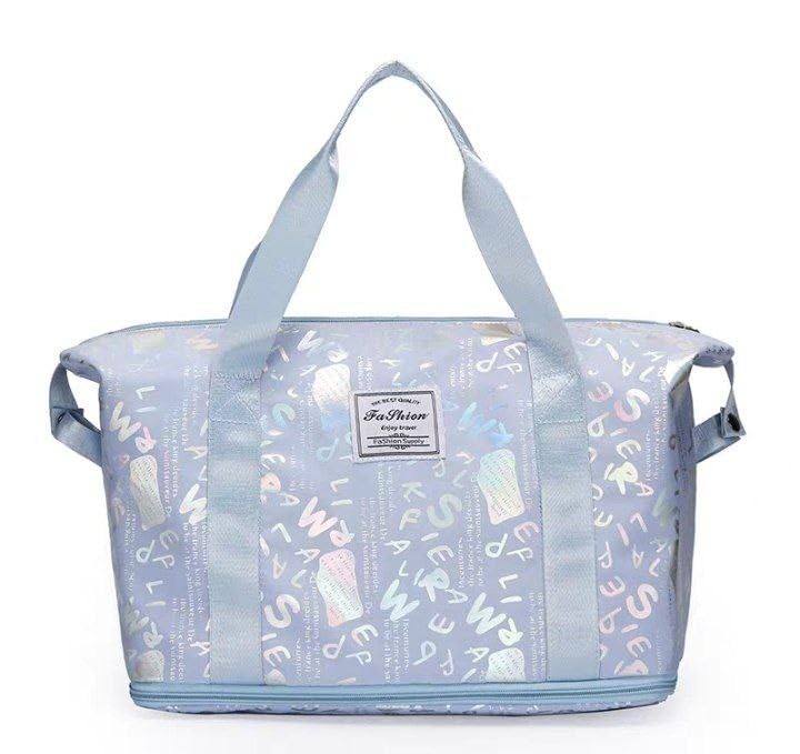 Generic - Expandable Hand Bag Stretchable material large capacity fitness storage bag new Oxford bag swimming travel dry and wet separation size (30x20x29) (Lite Blue)