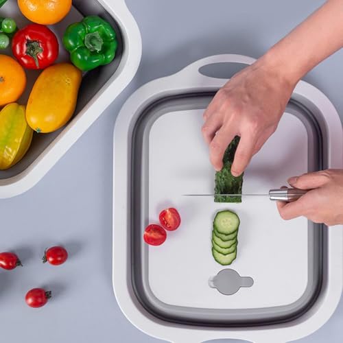 - 2-IN-1 SPACE-SAVING KITCHEN DESIGN – Enjoy a smart combination of cutting board and deep wash basin in one tool. Slice ingredients, then instantly convert it into a bowl to wash, soak, or rinse fruits and vegetables. Ideal for compact kitchens, dorm rooms, and camping setups, this collapsible board minimizes clutter while maximizing efficiency in daily food prep tasks.