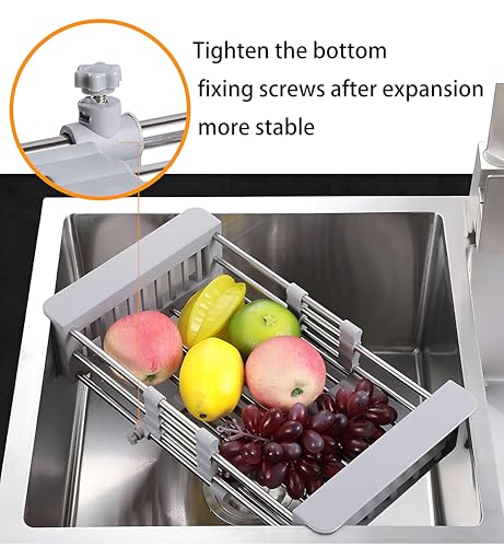 Generic - مصفاة حوض قابلة للتوسيع- سلة تصريف من الفولاذ المقاوم للصدأ 304 للفواكه والأطباق والخضروات، قابلة للتعديل، خالية من الصدأ، متعددة الأغراض للحوض أو سطح الطاولة