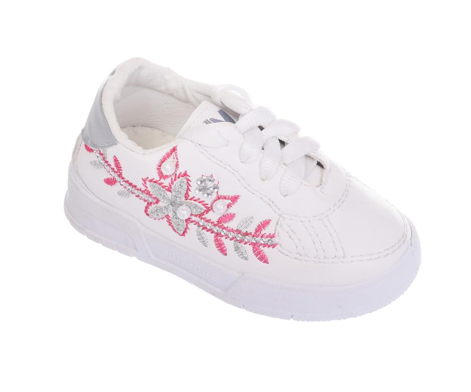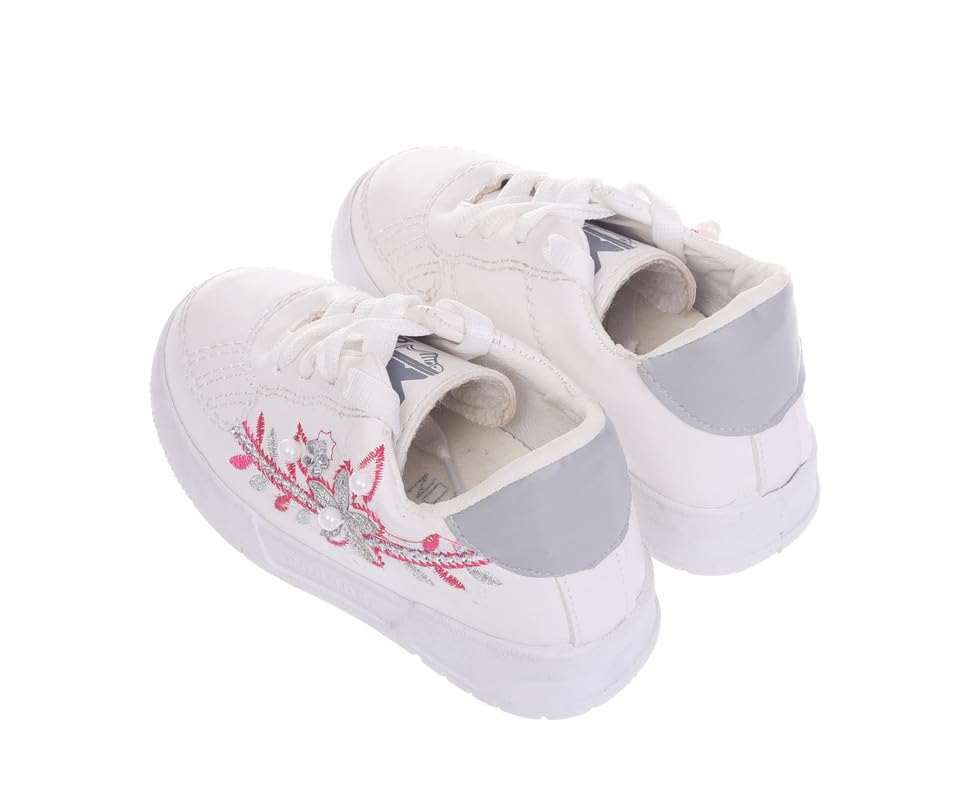 Express Footwear - Express Girl's Leather Walking and Outdoor Lace up Sneakers With Side floral embroidery
