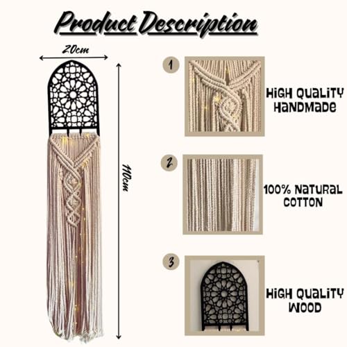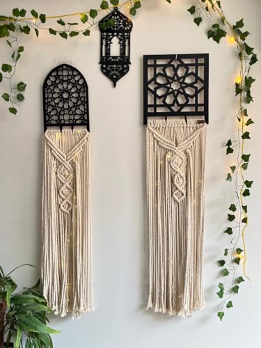- HANDCRAFTED DESIGN: Beautiful macrame wall hanging set featuring intricate cotton rope weaving paired with black geometric panels inspired by traditional lantern patterns