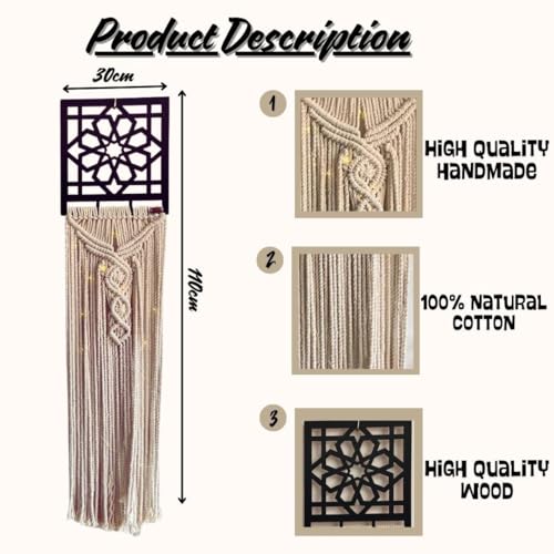 Generic - Exquisite Handcrafted Macramé Islamic Wall Hanging: Intricate Design for Spiritual Décor for Ramadan and Mother’s Day Celebrations (3, all 3 units)