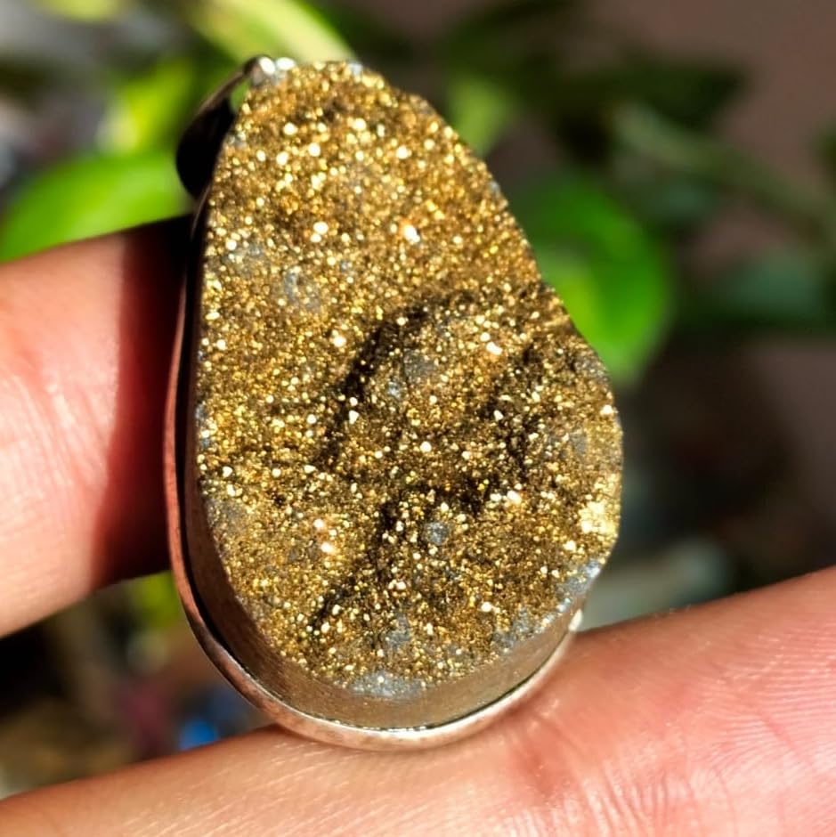 Generic - Exquisite Natural Druze Quartz Necklace Pendant - Distinctive Color (Large Size) Suitable for All Occasions - Genuine Natural Stone Totally - Great Gift for Everyone