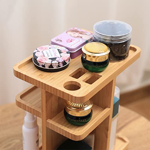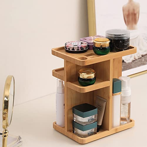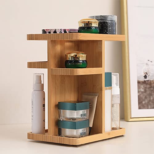 Exrp - منظم تخزين مستحضرات تجميل من الخيزران بدوران 360°، متعدد الوظائف للمكياج وأدوات الزينة مناسب للطاولة والمكتب والحمام وغرفة النوم والدولاب والمطبخ (بامبو)