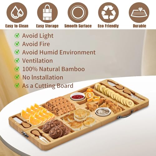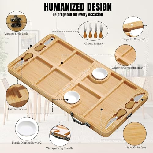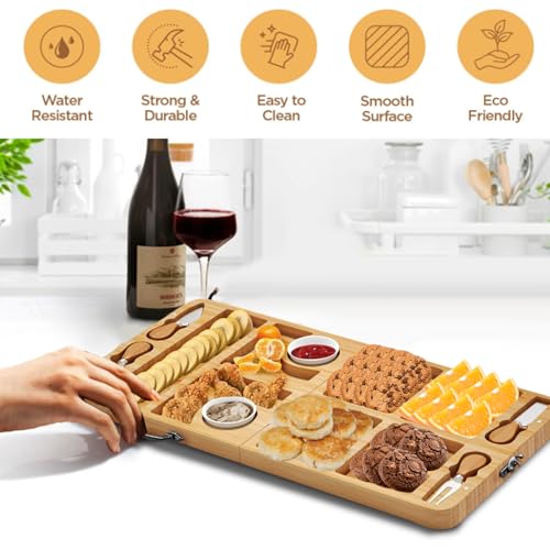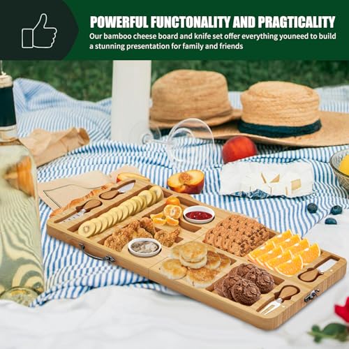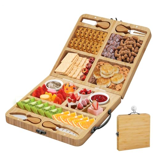 Exrp - الواح تشاركوتيري للسفر لتقديم الجبن قابلة للطي للنزهات الخارجية مع سكين، طبق تقديم قابل للطي للتجمعات العائلية والعطلات وحفلات الزفاف وهدايا بمناسبة المنزل الجديد
