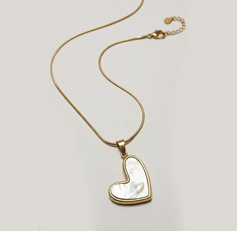 Generic - عقد على شكل قلب مطلي بالذهب مع قلادة لؤلؤ متلألئة. للحصول على ملاءمة مثالية، تضيف هذه القطعة الأنيقة سحرًا لا يتأثر بمرور الزمن إلى أي ملابس.