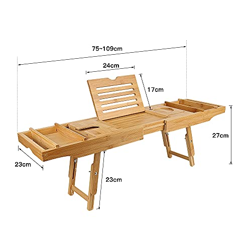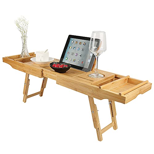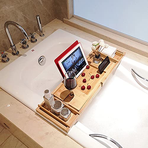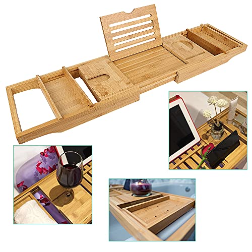 XUANYU - صينية حمام قابلة للتمديد، رف حوض استحمام قابل للسحب من الخيزران، جسر حوض الاستحمام، لوح حمام خشبي قابل للتعديل بطول قابل للتعديل