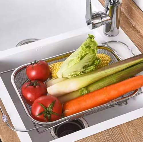 Generic - صفاية خضار وفاكهة استانلس ستيل قابلة للتمدد – مقاومة للصدأ – متعددة الاستخدامات لتصفية الخضار والمواعين أو الشوي في الفرن – مقاس 37×27 سم تمتد حتى 56 سم – جودة عالية