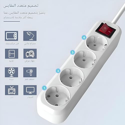 - This electrical extension socket features four power outlets and a safety switch for turning the power on and off, ensuring complete safety during usage. Perfect for home or workplace, it provides reliable power access with a 1.5-meter cord for flexibility.