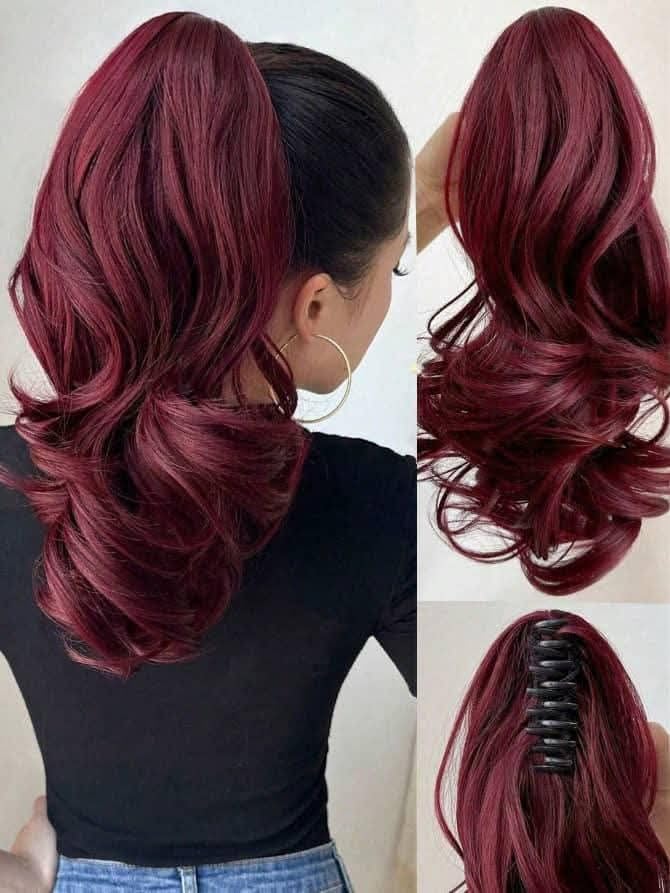 Generic - Extention Long Wavy Ponytail Wig for Comfortable and Stylish Look Heat Fiber with Clip for Easy Installation Dark Red