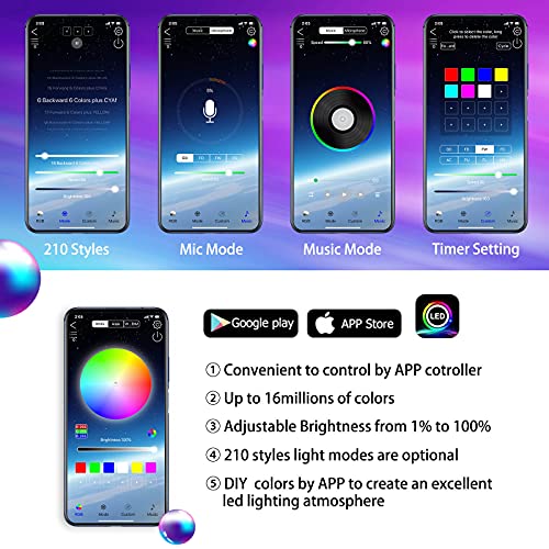 - 【Upgrade & Chasing Mode】 Maodaner car Underglow light are upgraded to color chasing lighting, Built-in color chasing modes looks like recurrently chasing, skipping, dancing, ling on the strip, There are 210 preset modes. If you don’t want the chasing or flashing mode, you can also choose a static color mode in APP; In music mode,the light's color, brightness and speed sync to your favorite song on the trip, Just enjoy every beat to the fullest when driving!