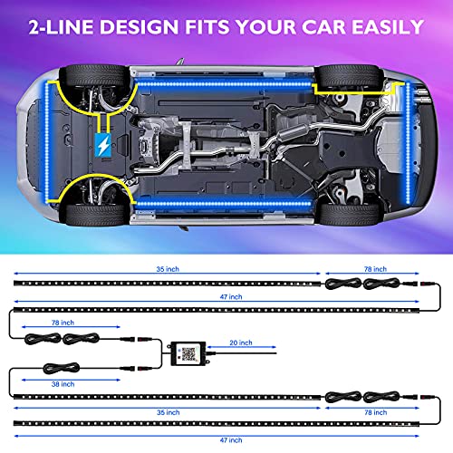LIGHEID - Exterior Car Underglow LED Strip Lights, Dream Color Chasing Neon Accent Lights Kit, 16 Million Colors Sound Actived Underbody System Lights - Wireless APP Control, DC 12-24V(2×47inch+2×35inch)