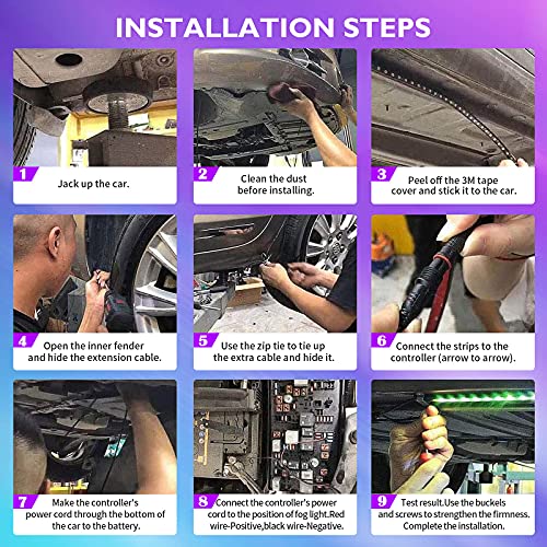- 【Easy to Install】Universal for all automobiles and devices equipped with a DC12V power source. 2 lines design with long wires helps connect the car lights. Flexible tubing can be bended around corners easily. Strong 3M adhesive, cable tie equipped.