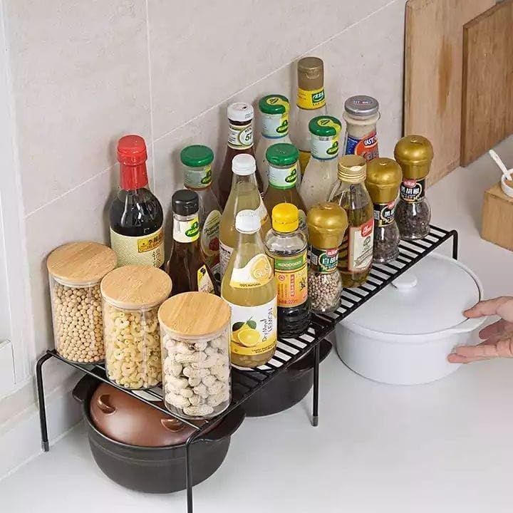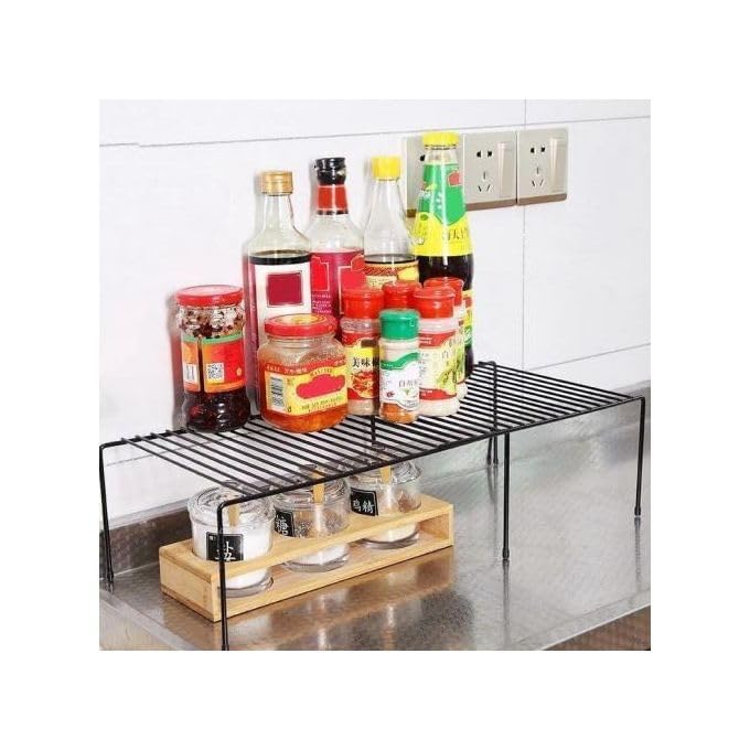 - رف إضافي مزدوج 2 في 1 للاستخدام في دواليب المطبخ وكمنظم تحت الحوض لتنظيم الأطباق وبرطمانات التوابل الصغيرة مع إمكانية توسعته حسب المكان