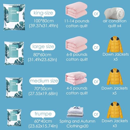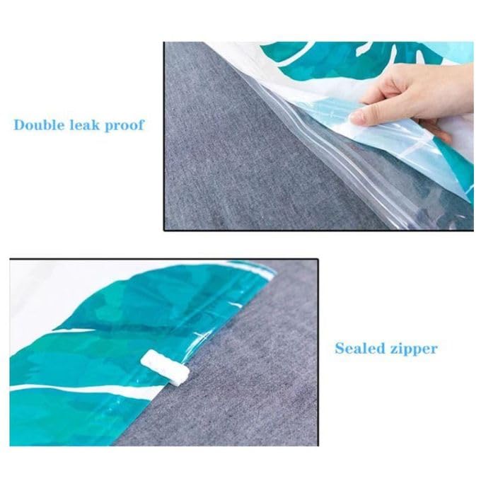 - ✅ 【إزالة فعالة للهواء】 متوافقة مع أي مكنسة كهربائية قياسية، تعمل هذه الميزة على ضغط الملابس وفرش السراير بسرعة، مما يقلل من الحجم بنسبة تصل إلى 80% لتوفير المساحة الأمثل. 💨