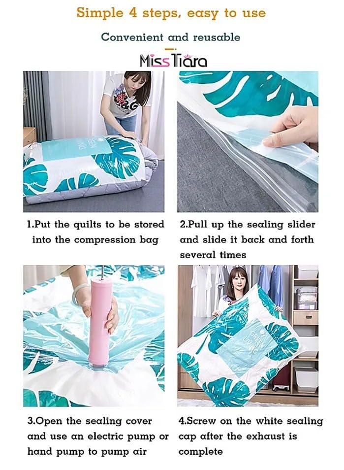 - ✅ 【استخدام بسيط ومريح】 قم بتعبئة الملابس، وأغلق الشنطة بإحكام، واسحب الهواء بالمكنسة بسهولة، لتكوين حل تخزين منظم وموفر للمساحة في دقائق. 🧺