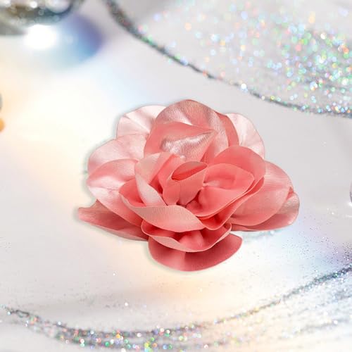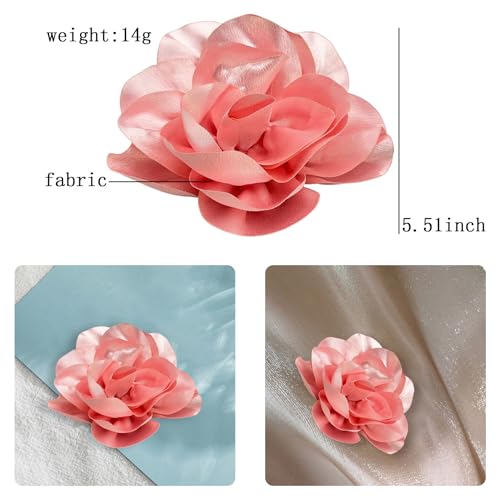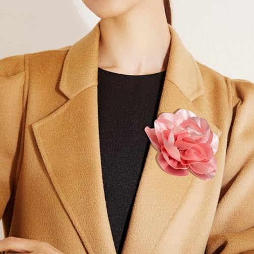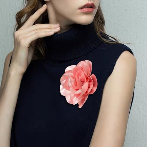 HSQYJ - Extra Large Satin Fabric Camellia Flower Brooches Pins Beautiful Cloth Art Oversized Rose Floral Brooch for Party Dance Wedding Banquet for Elegant Women Girl 5.5inch (Pink)