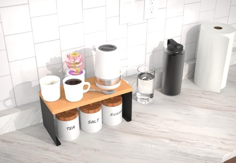 - Compact Design: Small-sized shelf organizer that maximizes vertical storage space without taking up valuable counter or floor area