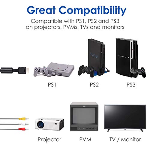 - توافق رائع: كابل صوت وصورة مركب من ايه في إلى RCA لجهاز سوني بلاي ستيشن 1 2 3 وPSX