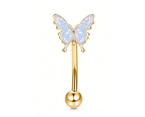BIJOUX BEAUTIQUE - Eyebrow/Ear Butterfly Curved Barbell Piercing Jewelry - Gold