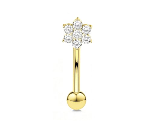BIJOUX BEAUTIQUE - مجوهرات بيرسينج منحنية على شكل زهرة للحواجب/الاذن - ابيض وذهبي