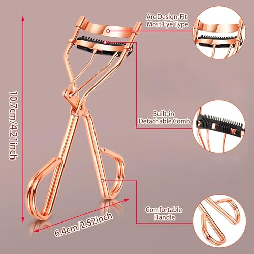 - تصميم مريح: تتميز أداة تجعيد الرموش هذه بإطار مقوس أنيق بلون ذهبي وردي، مصمم لرفع ولف الرموش بلطف دون التسبب في تكسرها، مما يجعلها مثالية للحصول على تأثير رفع رموش طبيعي.