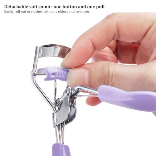 OnIUeZky - أداة لف الرموش مع مشط مدمج، ملحقات احترافية للف الرموش تناسب جميع أشكال العين، لون أرجواني