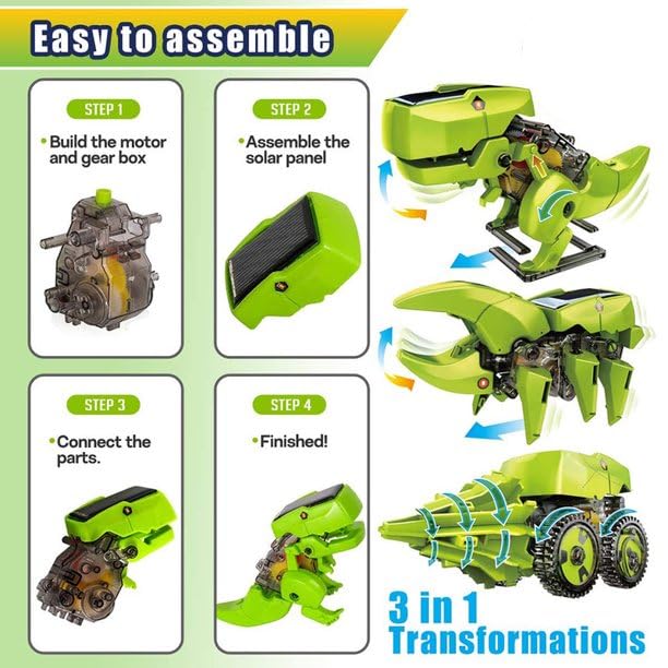 EYESIGN - 3 in 1 Solar Robot DIY Dinosaur STEM Robot Toys Kids, Boys & Girls Building Games Educational Science Coding Engineering Kit Gift for School Family Creative Activities