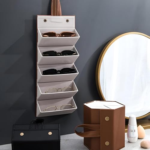 Generic - Eyewear Holder - Stylish Organizer for 5 Pairs of Glasses, Protects and Stores Safely, Randomly Colored Leather Case