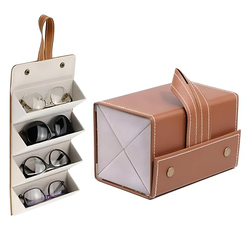Generic - Eyewear Storage - Elegant Leather Travel Box with Six Slots, Portable Folding Sunglasses Holder for Efficient and Stylish Organization on the Go