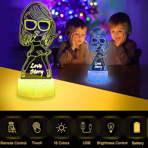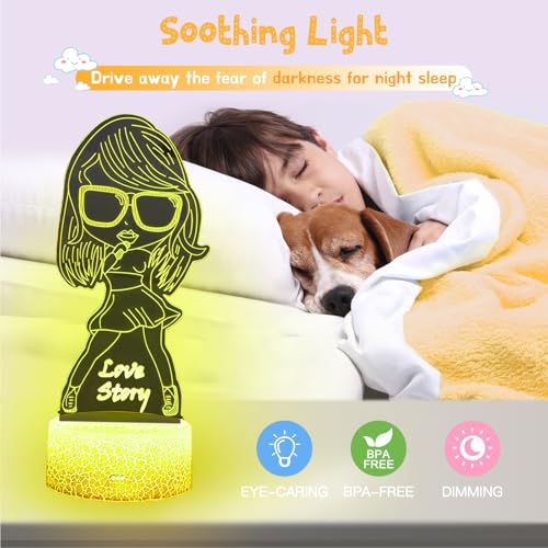 - 【هدية وديكور مميز】تجربة إضاءة موسيقية غامرة، ستخلق إضاءة تايلور تأثير رؤية ثلاثي الأبعاد (لوح اكريليك يخلق وهمًا ثلاثي الأبعاد) بعد إضاءتها، إنها ضرورية لعشاق الموسيقى والأطفال على حد سواء. هذه الإضاءة الديكورية من تايلور عملية جدًا أيضًا، فهي صغيرة الحجم وسهلة الحمل والاستخدام. تخيل السعادة والبهحة عندما يحصل الأطفال على إضاءة تايلور الليلية ثلاثية الأبعاد هذه كهدية عيد ميلاد/هدية كريسماس/هدية عيد الفصح.