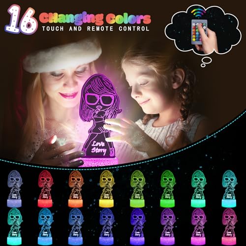 Eygerur - أضواء ليلية ثلاثية الأبعاد بنمطين من ايجيرور وهدايا تايلور: إضاءة ليد ثلاثية الأبعاد بتصميم وهمي قابلة للتعتيم بـ 16 لونًا مع جهاز تحكم وخاصية اللمس الذكي لديكور غرف الفتيات وحفلات الموسيقى وأعياد