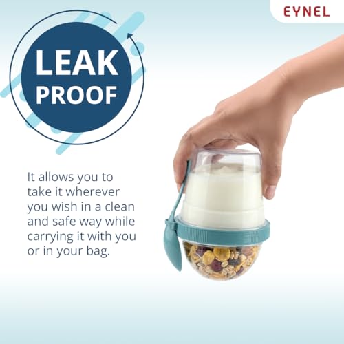 - KEEPS CEREALS FRESH - No more soggy cereal! These yogurt cups are designed for storing milk and cereal separately. The lid divides the cup into two compartments: one for cereals and another for milk. Thanks to this, you can mix your cereal right before eating it.
