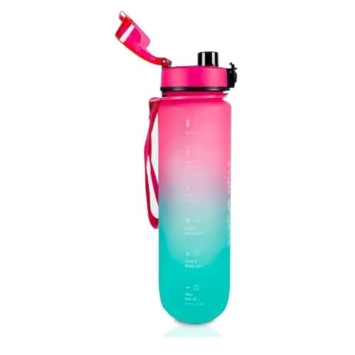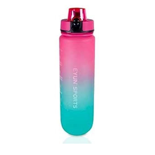 Eyun - EYUN Multicolor Sports Water Bottle 1000 ml, Plastic Leakproof Motivational Water Bottle for Travel, Fitness, Outdoor Sports, Home, School,Gym,Yoga & Office, Pink/Green