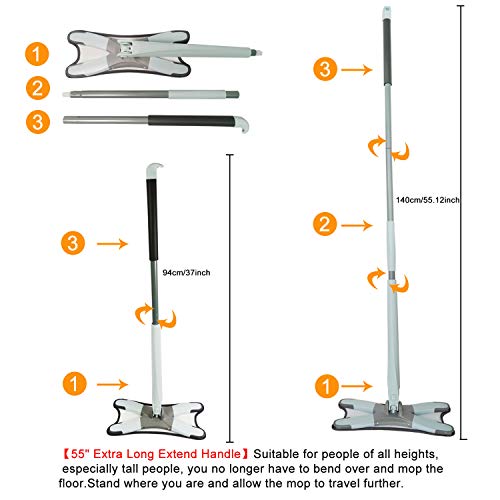 - 【55" Extra Long Extend Handle】Suitable for people of all heights, especially tall people, you no longer have to bend over and mop the floor.Stand where you are and allow the mop to travel further.