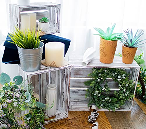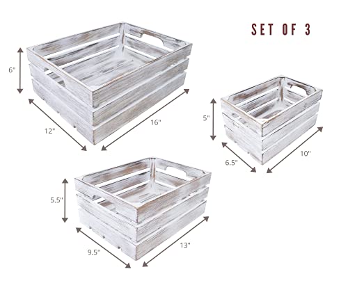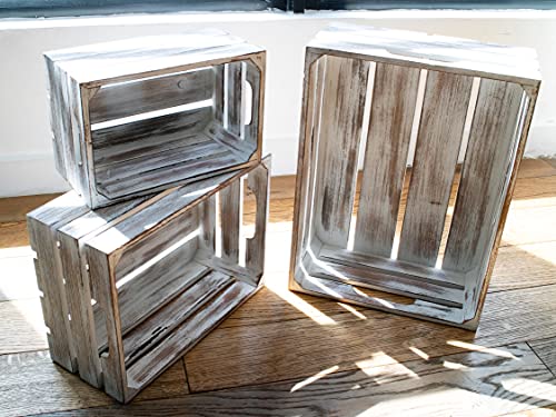 EZDC - اي زد دي سي مجموعة من 3 اقفاص خشبية متداخلة بيضاء ريفية، سلة خشبية مثبتة على الحائط مقاس 16 × 12 انش، صناديق تخزين، صندوق خشبي بوهو للتخزين، رافعات عرض، ديكور