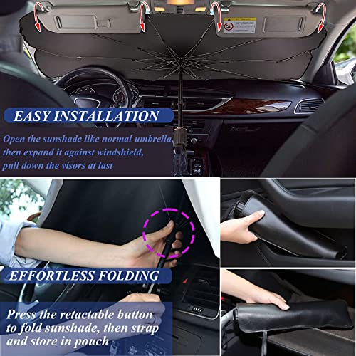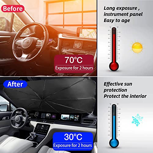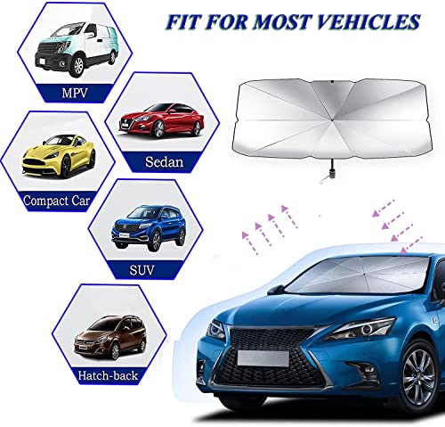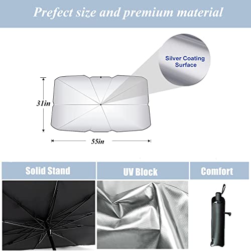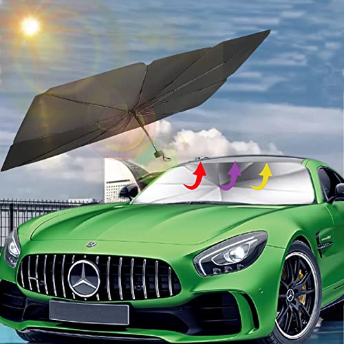 - Ezrealhoon Car Windshield Sun Shade Umbrella | Car Shade Front Windshield | Windshield Sunshade Cover | Automotive Interior Accessories for Block UV Rays & Heat (55''x 31'')