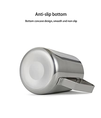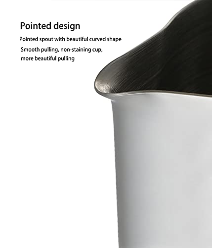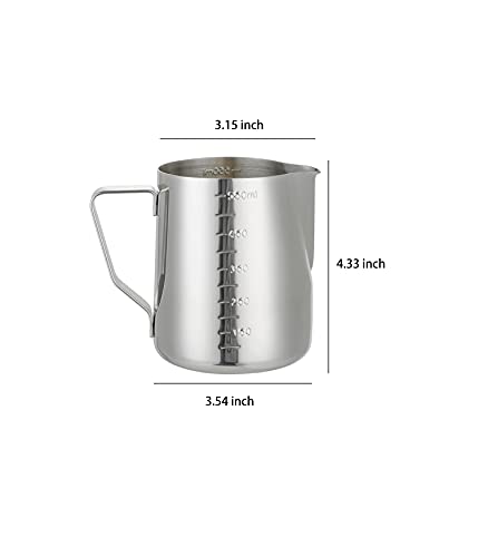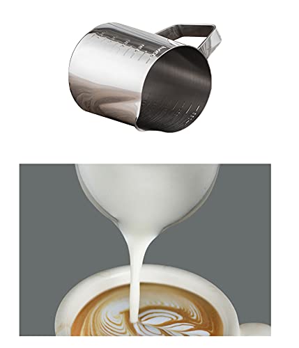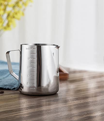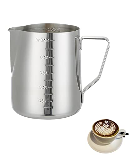 - Stainless steel 600ml milk jug coffee frothing mug Pointed spout with graduated pull measuring cup 20oz milk frothing jug Suitable for making all kinds of coffee