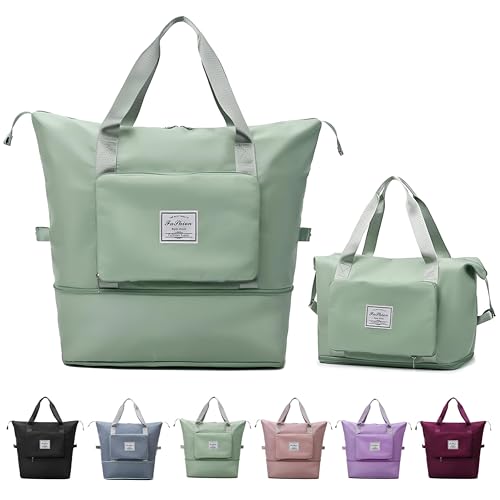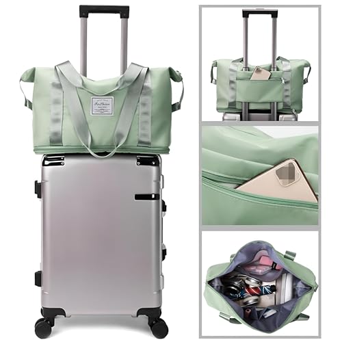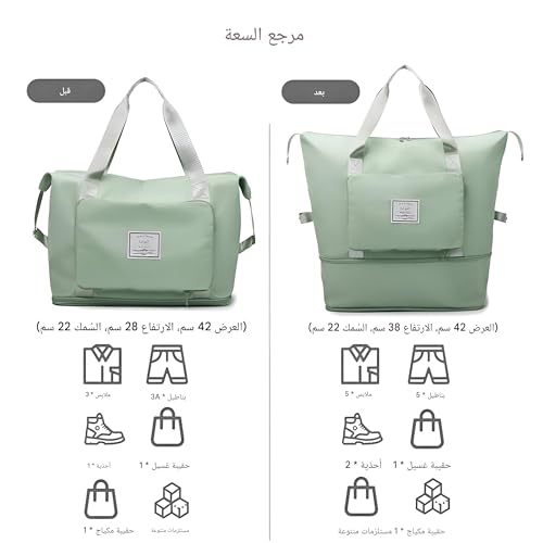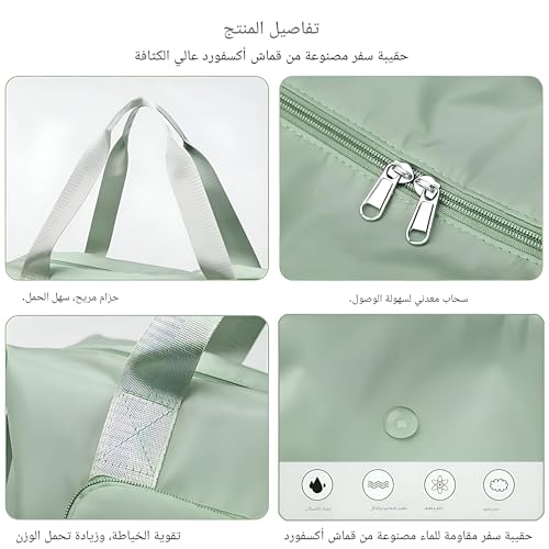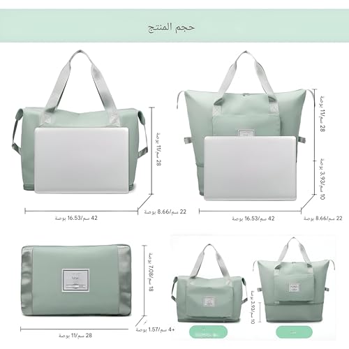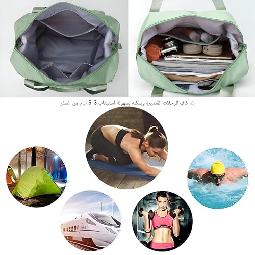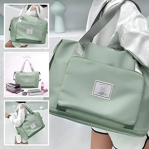 Generic - Fabric bag-large size foldable travel cargo for women, ideal for packing luggage and sports gear, featuring multiple pockets, easy storage, convenience handles for easy carrying (Light Green)