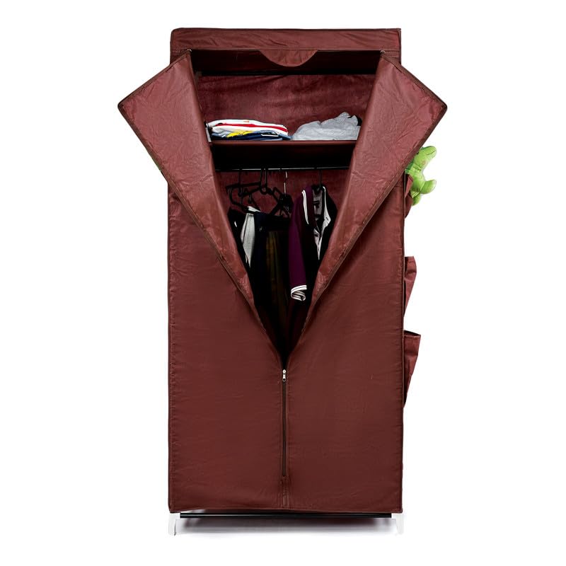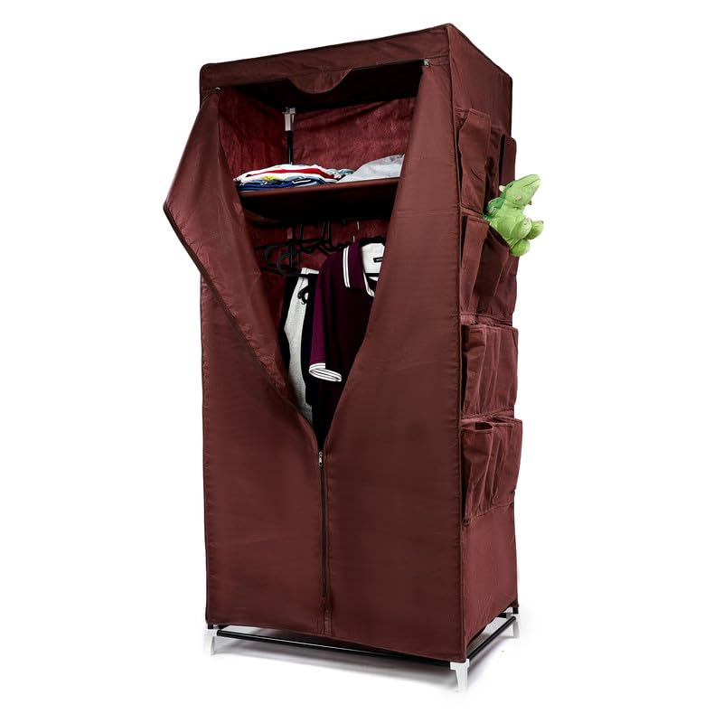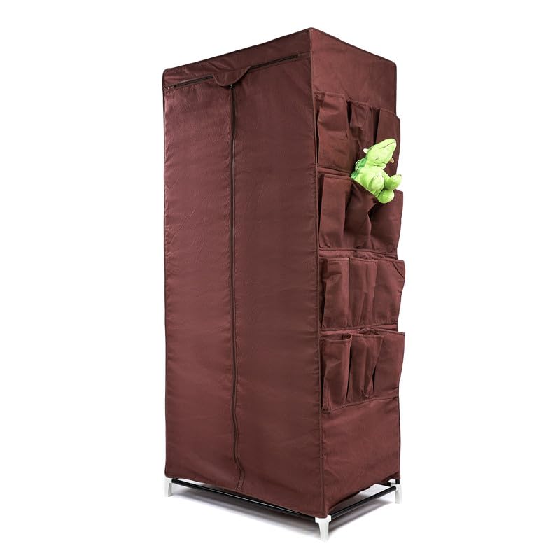 Generic - دولاب تخزين ملابس من القماش بتصميم قابل للطى رف و حامل لتعليق الشماعات عدد 12 جيب جانبى مقاس 160x50x75 سم لون بنى
