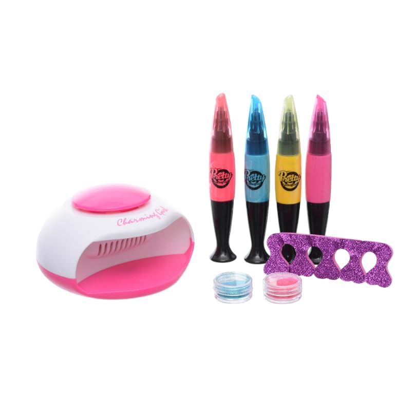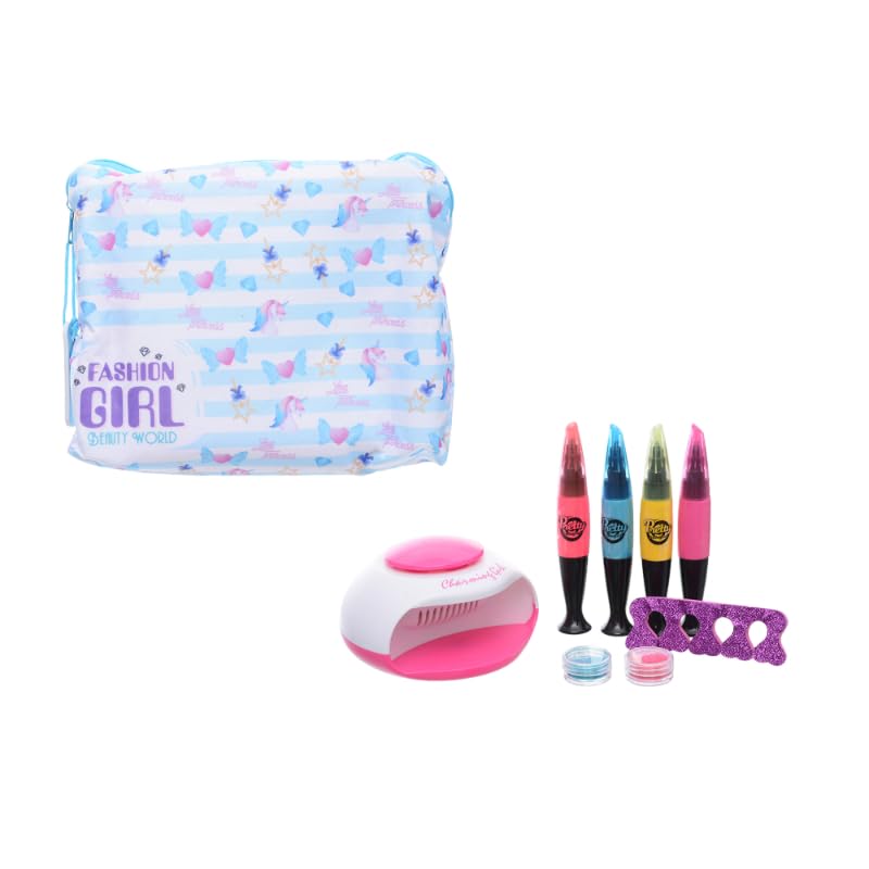 Generic - Fabric Zippered Bag Contains Nails Fashion Accessories With Dryer Machine And Colorful Polish Give More Entertaining For Girls Set Of 16 Pieces - Multi Color