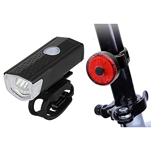 FABSPORTS - FABSPORTS Aluminum USB Rechargeable LED Bike/Bicycle Light Set, High Bright Front Light and Back Light, 3 Light Modes, Portable, Waterproof Headlamp (Black)