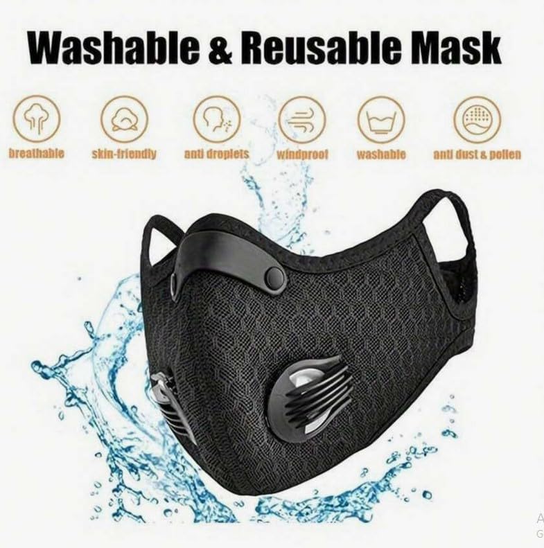 Generic - Face Mask with Breathing Valves, with Carbon Filter and Clear Screen Removable Protection, Sport Cycling Valves, Windproof and Dustproof Cycling Masks - Black - by KaberTrade