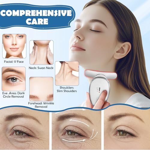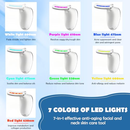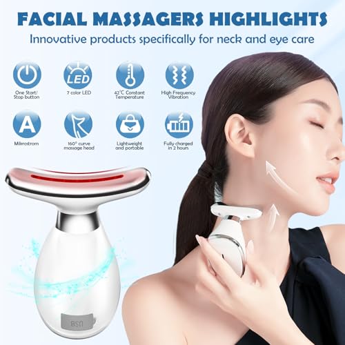 Mapille - جهاز تدليك الوجه والرقبة، جهاز تجميل ذكي مضاد للتجاعيد بـ7 الوان و3 اوضاع لرفع الوجه، جهاز تجميل الوجه باهتزاز عالي التردد 42 درجة للعناية بالبشرة وتحسينها وشدها
