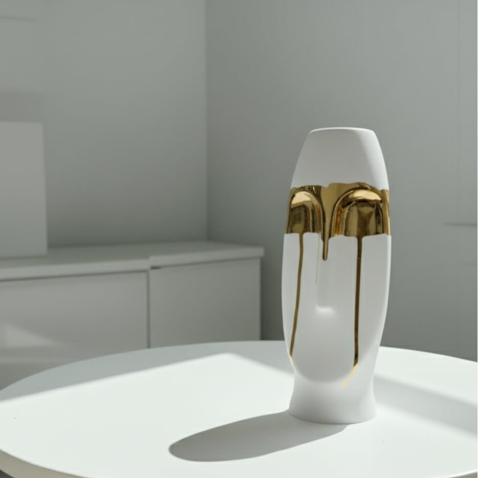 Generic - Face Vase Duo,An artistic blend of minimalism and luxury, the Aureus Face Vase Duo showcases abstract human faces with smooth white surfaces and dripping metallic gold accents,white