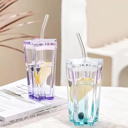 Generic - كوب زجاجي ذو جوانب - جزء خارجي أنيق ومضلع مع غطاء آمن مانع للتسرب ووضوح لامع، مصنوع لتعزيز كل رشفة باردة من القهوة المثلجة والكوكتيلات والمشروبات الباردة النابضة بالحياة.