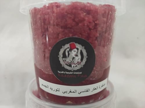 - صنفرة العكر الفاسي المغربي ومستخلصات شجرة شقائق النعمان الملئ بمضادات الأكسدة و الفيتامينات الطبيعية والرمان الممزوجة بإملاح البحر الصخري ومزيج من الزيوت الطبيعية مثل زيت الاركان المغربي الاصلي و زيت ورد الجوري الطنجري المغربي لمنحك جسد ناعم خالي من الجلد الميت و مشرق ومورد باللون الأحمر الطبيعي. فوائد صنفرة العكر الفاسي للجسم: ١- تعدّ من المستحضرات الفعّالة في معالجة مشاكل البشرة المختلفة.