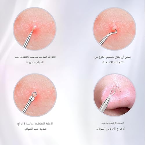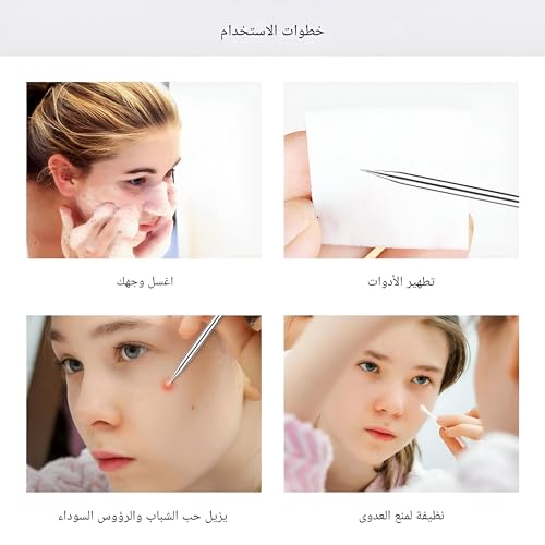 Generic - مجموعة ازالة الرؤوس السوداء للوجه - ابر حب الشباب من الستانلس ستيل مع شنطة حمل لتنظيف المسام العميقة على الوجه والانف، مجموعة من 4 قطع
