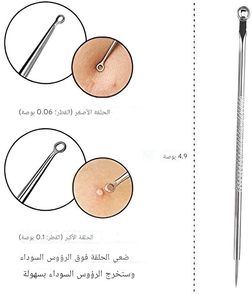 - تتضمن ميزات التصميم حلقة فولاذية مزدوجة الرأس تعالج إزالة الرؤوس السوداء بشكل فعال، إلى جانب مقابض مضادة للانزلاق لقبضة وتحكم أفضل في الضغط. يمنع هذا التصميم المدروس تلف البشرة ويحسن ثقة المستخدم أثناء إجراءات الاستخراج.